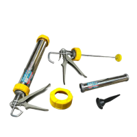 Закрытый профессиональный пистолет для герметика применяется для плавного выдавливания герметика из тубы при нанесении на поверхность при герметизации различных швов и отверстий. Имеет закрытый цилиндрический корпус, выполненный из алюминия и используется для заполнения пустот и щелей герметизирующими материалами.