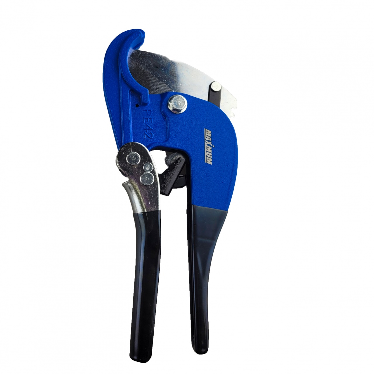 Резак для труб 42 мм от бренда "MAXIMUM" — качественный профессиональный инструмент для резки пластиковых труб, плинтусов, профилей, резиновых шлангов. Усовершенствованный храповый механизм позволяет отнести инструмент к профессиональной линейке.