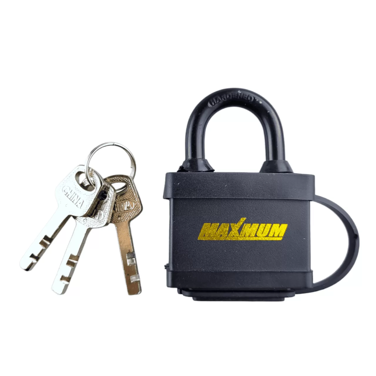 Замок навесной влагозащитный 40 мм от «Maximum» выполнен в пластиковом кожухе для защиты от воды, грязи, оледенения.